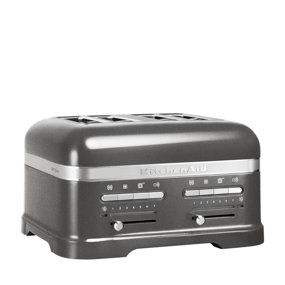 Mit der Sandwich-Zange bereiten Sie köstliche geröstete Sandwiches zu. Falls Ihnen Bagel und Brötchen mehr zusagen, ist auch dafür gesorgt – mit der speziellen Bagel-Funktion. Beim Vier-Scheiben-Toaster können Sie jeweils 2 Schlitze unabhängig von den anderen beiden verwenden. So toasten Sie 2 oder 4 Scheiben Brot für noch mehr Möglichkeiten. Man sagt, die Küche sei das Herz des Hauses. Nun, der KitchenAid Artisan-Toaster ist das Herz Ihrer Küche.
