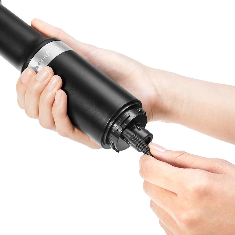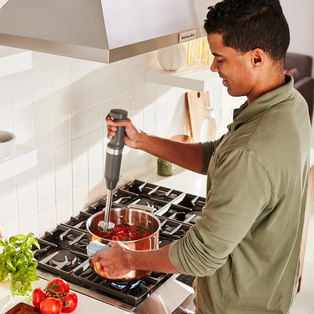 Gehen Sie dorthin, wohin der Ehrgeiz Sie führt – mit dem kabellosen Stabmixer von KitchenAid. Er bietet die volle Leistung, die Sie erwarten – ganz ohne Kabel. Der kabellose Stabmixer ist mit einem leistungsstarken Lithium-Ionen-Akku ausgestattet, der für optimale Laufzeit und Leistung sorgt. Sie können bis zu 25 Schüsseln Suppe* zubereiten und die Akku-Anzeige zeigt an, wenn der Akku aufgeladen werden muss. Der leichte und ergonomische Stabmixer kann mit nur einer Hand bedient werden. Der Startschalter mit variablen Geschwindigkeitsstufen ermöglicht es Ihnen, die Speisen genau so zuzubereiten, wie Sie es möchten, und der Sicherheitsschalter schützt vor versehentlichem Auslösen. Perfekte Farbduos für Ihre Küche. Die Cordless-Kollektion umfasst einen Zerkleinerer, einen Stabmixer und ein Handrührgerät, die jeweils separat erhältlich sind. Das praktische Ladegerät ist im Lieferumfang enthalten und funktioniert mit allen Produkten der Kollektion.