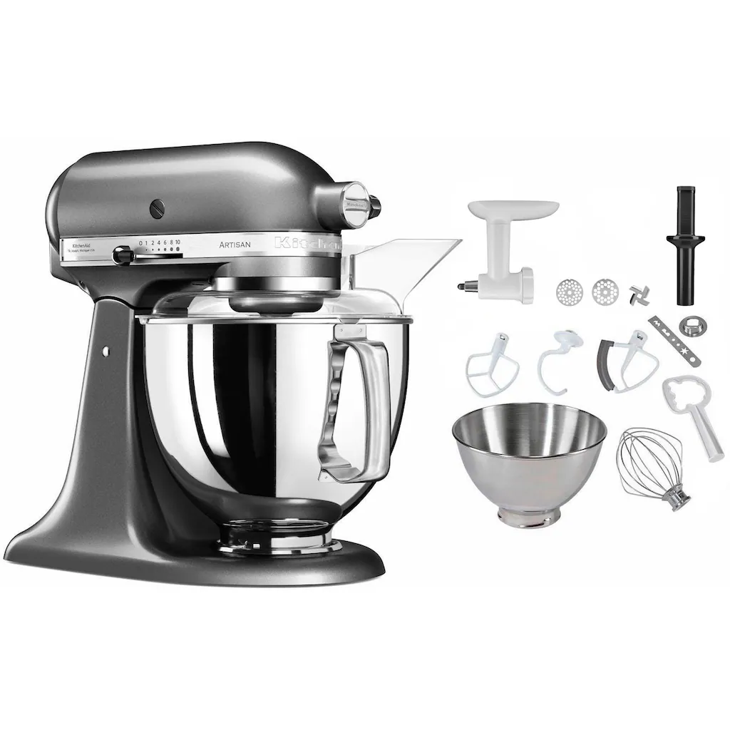 KitchenAid Küchenmaschine »5KSM175PSEMS MEDALLION-SILBER«, Mit Gratis Fleischwolf+Spritzgebäckvorsatz (Wert Ca. 129,-UVP)