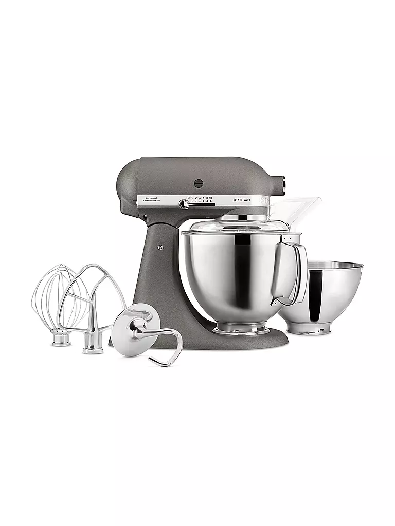 Unsere solide und leistungsfähige 4,8 L Küchenmaschine eröffnet Ihnen durch ihre Vielseitigkeit zahlreiche kulinarische Möglichkeiten. Mit den beiliegenden Edelstahlzubehörteilen – Schneebesen, Flachrührer und Knethaken – können Sie im Nu und mühelos Teig kneten, Brot herstellen, Baisers aufschlagen und sogar Kartoffeln pürieren. Das langlebige Produkt ist aus Zink gefertigt und bietet Ihnen 5 Jahre Garantie. Die Küchenmaschine verfügt über Bedienknöpfe aus Metall und eine Emaille-Beschichtung in Premium-Farben. Sie können ganz einfach zwischen Geschwindigkeitsstufen von 1 bis 10 wechseln. Der leistungsstarke Direktantrieb der Maschine sorgt für perfekte Ergebnisse. Die im Lieferumfang enthaltenen 4,8 L und 3 L Edelstahlschüsseln sorgen dafür, dass Sie sich nicht während der Zubereitung um den Abwasch kümmern müssen. Wenn Sie fertig sind, können Sie die Schüsseln und Zubehörteile in die Spülmaschine geben und das Gerät mit einem feuchten Tuch abwischen. Das herausragende Design von KitchenAid unterstützt Sie bei Ihren kulinarischen Abenteuern. Die Maschine kann auch mit einer Reihe von optionalen Zubehörteilen kombiniert werden.